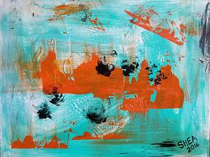 I love how these colors talk to each other. This painting was created through inspiration gained by viewing several documentaries about the Vietnam War. The terror the young soldiers must have felt was unimaginable. It’s a strange blend of chaos and calm. It’s a very emotional piece for me. My hope is it provokes a strong feeling when you view it.